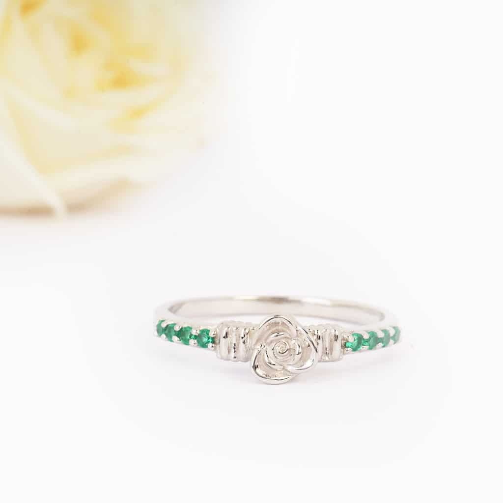 Sterling Silver Rose Ring Studded with Green Zircon